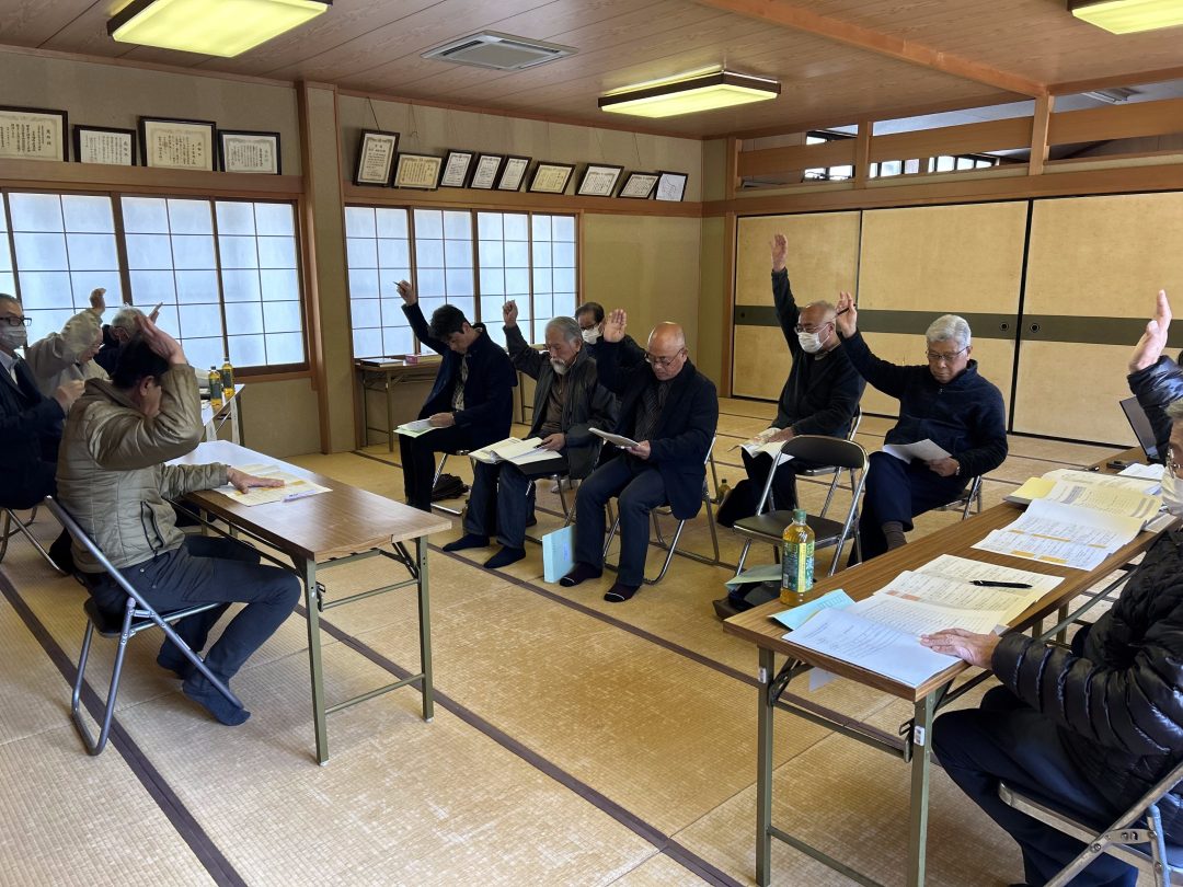 羽島市平方第二地区 第12回総会 2026年04月03日 日 時 令和8年3月14日(土) 午前10時00分 場 所 平方八幡神社社務所 議決事項 第1号議案 事業計画変更(第5回)について 第2号議案 定款の変更について 第3号議案 令和8年度事業費収入支出予算について 以上のとおり第12回総会を開催し、第1号~第3号議案について議決しました。